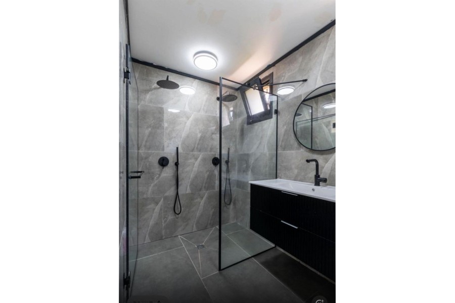 מגבות, שמפו, תחליב רחצה, מקלחת ראש גשם.